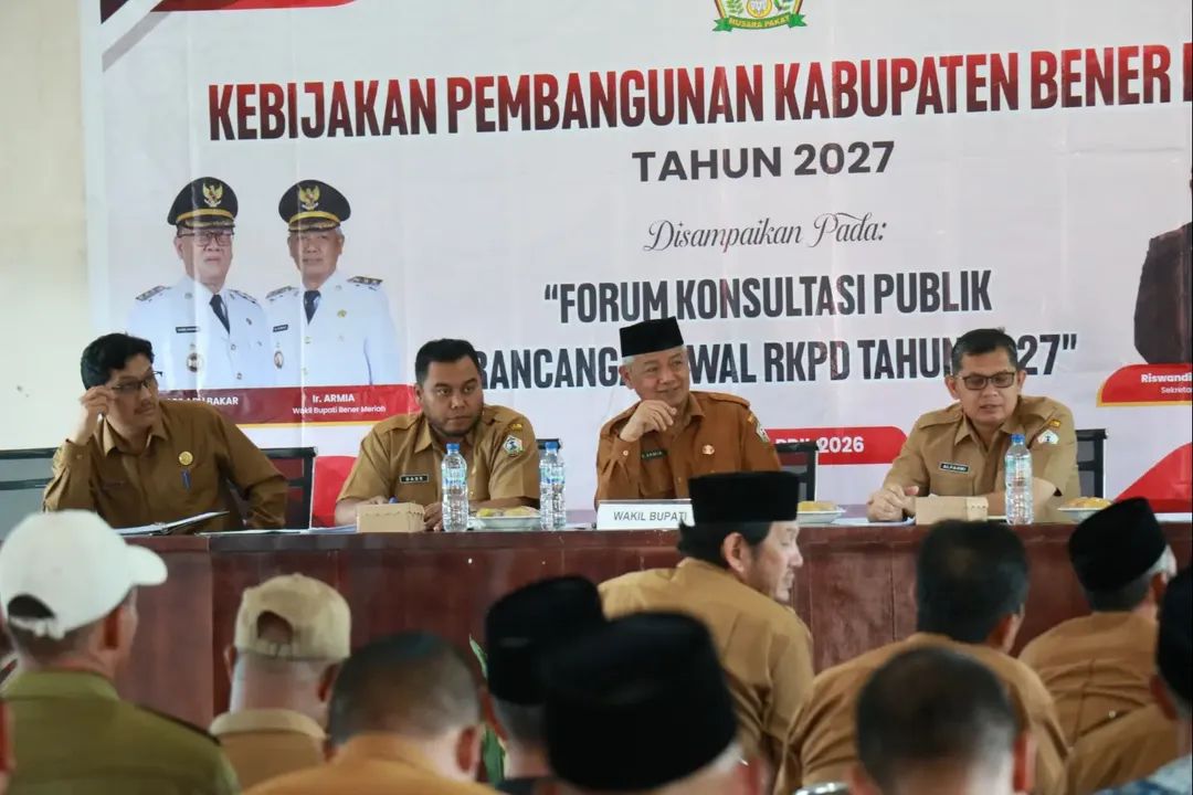 BENER MERIAH – Wakil Bupati Bener Meriah, Armia, memimpin forum konsultasi publik penyusunan Rencana Kerja Pemerintah Daerah (RKPD) 2027 di Aula Dinas Pendidikan, Senin, 13 April 2026. ­Di hadapan jajaran pemerintah dan pemangku kepentingan, Armia mengingatkan agar forum tahunan itu tak berhenti sebagai agenda seremonial.